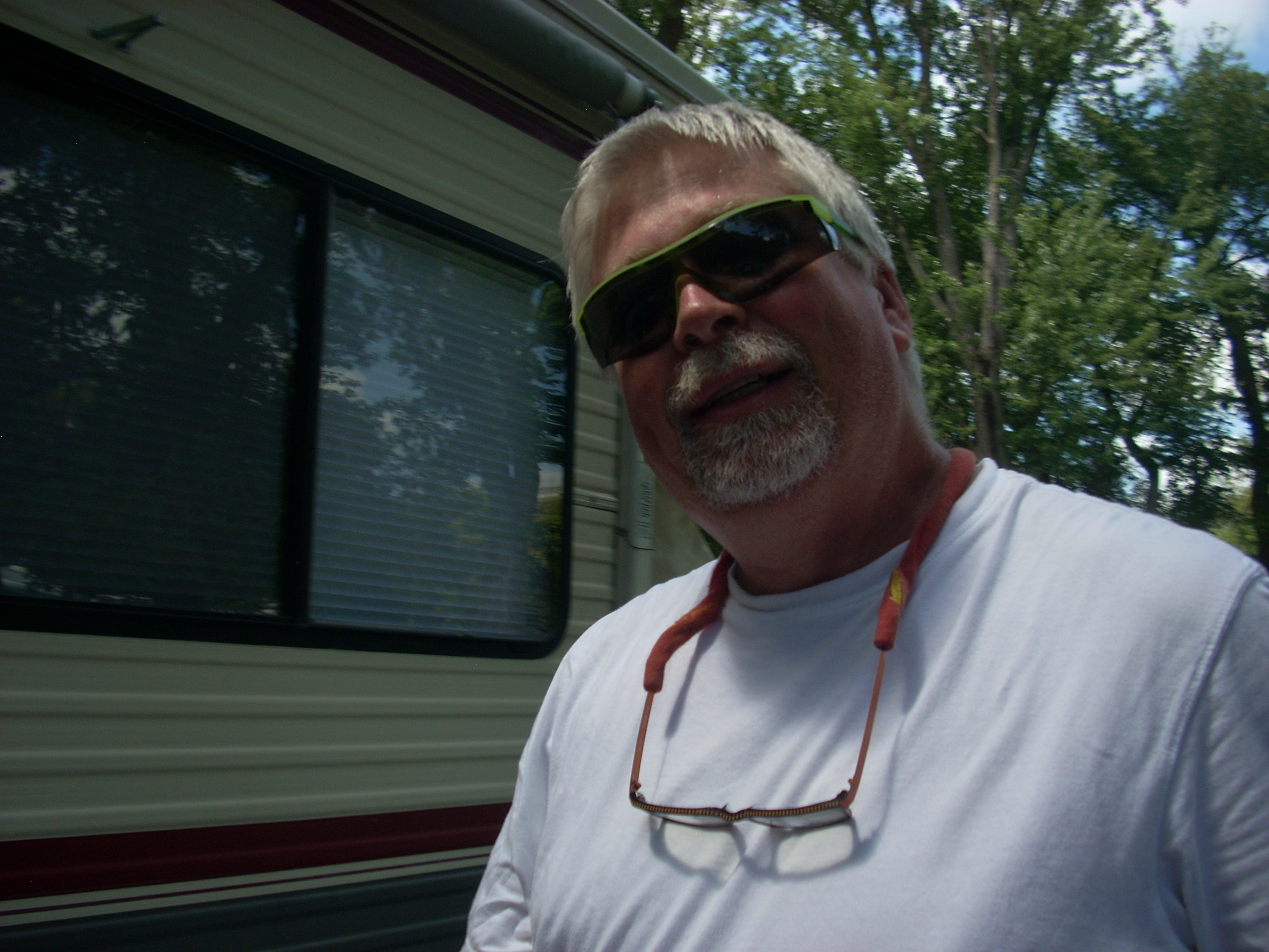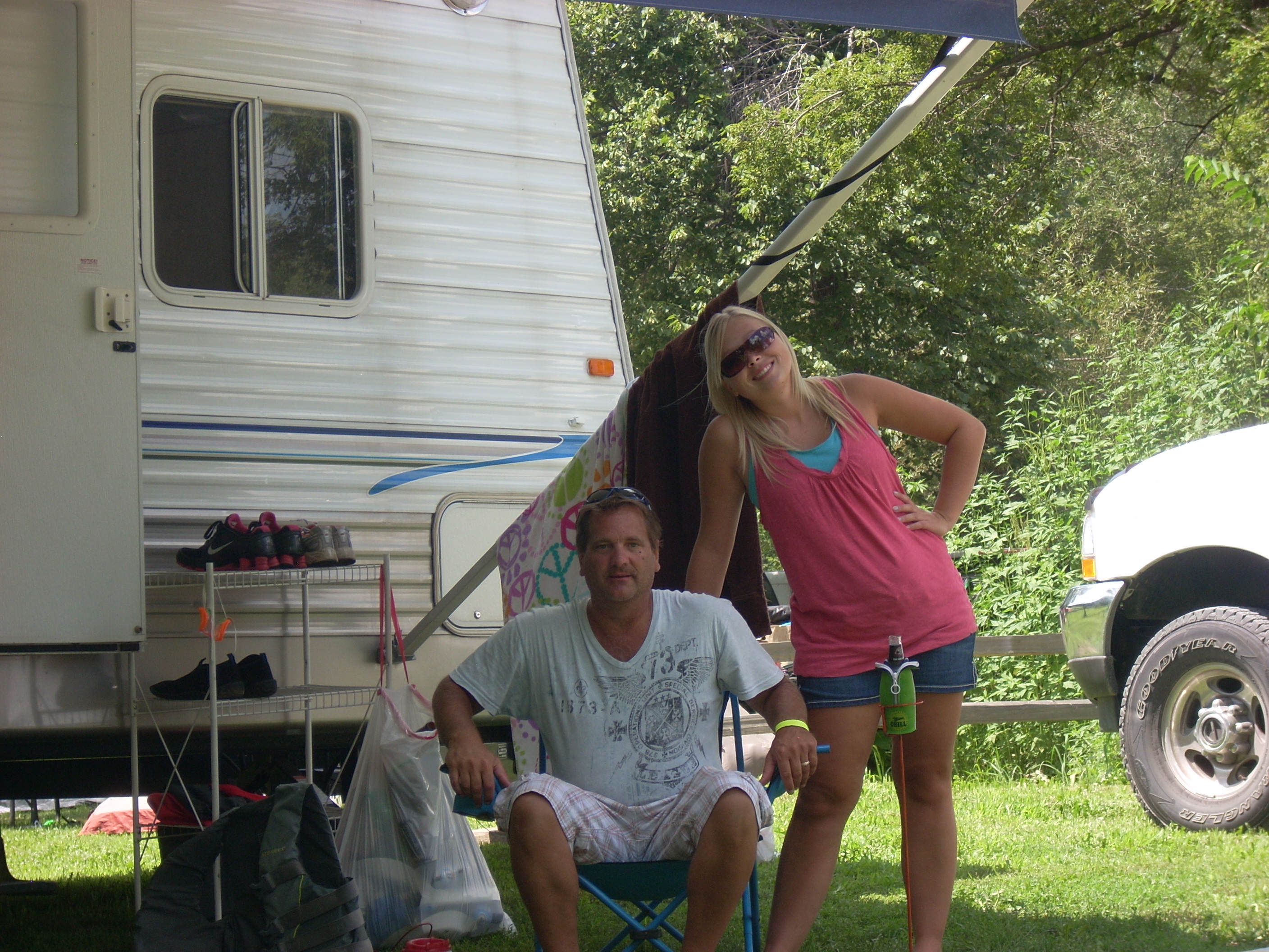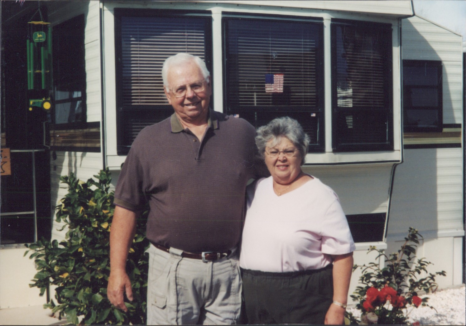 Ron and Janet in front of our trailer